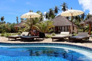 AccommodationRight on the shore-line of the beach, 8 deluxe rooms make the exclusive accomodation. All bungalows are built following the traditional design of local arquitecture. They are hand-built by artisans of the island using local materials from Rote itself. The bungalow roofs are thatched (local name daun kelapa) resting on coral-rock walls. Each accomodation is spacious, comfortable and offers the best views of the wave of T-Land, the immense sea and superb landscapes surrounding the resort. The T-Land Resort is a collection of charming rooms with their own distinctive decor. To achieve this we have been inspired by a combination of Timor Style furniture (antiques) with teak wood first quality. The private bathrooms are outside and the terraces offer magnificent sea views. T-Land resort offers four air-conditioned bungalows, each reflecting the local architecture and crafted by Indonesian artisans using materials from Rote Island. The bungalows feature thatched roofs and coral-rock walls, perfectly blending into the surrounding environment. With unique decor, Timor-style antiques, and teak furniture, the bungalows feature outdoor bathrooms and terraces with breathtaking sea views. Each room has a name that represents one of the most emblematic locations in the area and its traditions. Each bungalow features: Spectacular views of the ocean, lagoon and pool. Bed options: double or twin, equipped with mosquito nets. Air-conditioning - Hot showers - Mini fridge. Safety box - Mobile fans. Available cot with mosquito net for children under 2 years. Two daily cleaning services. Bath and pool towels are available in each room. Amenities such as bath gel and shampoo. The resort also features a beachfront restaurant/cafe where youāll dine with the white sand beach beneath your feet, on a fusion of traditional Rote Island cuisine and Western dishes. Relax by the resortās swimming pool and bar, where you can enjoy a cool drink with your family and friends as you watch the day go by without a worry in the world.